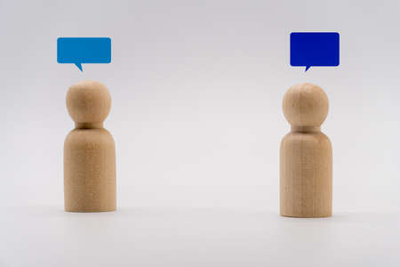 Wooden human icon with bubble icon. Concept for communication and online chat.