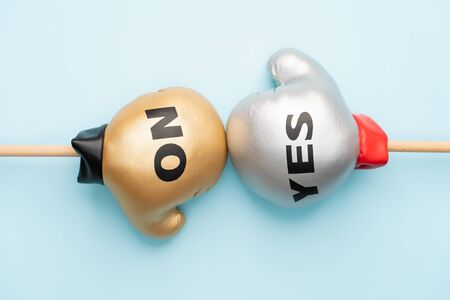 Yes spelled in dice letters in foreground with the word no out of focus in background Isolated on black background