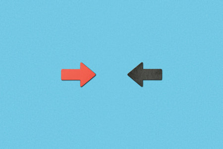 Two arrows, one white pointing left and one orange pointing right, set against a textured turquoise background.