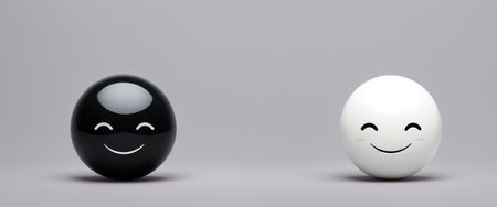 Positive and negative thinking, attitude. Positivity, negativity. Duality principle. Smile, sad emoji on wooden cubes
