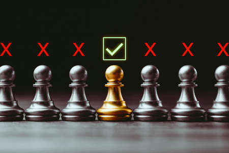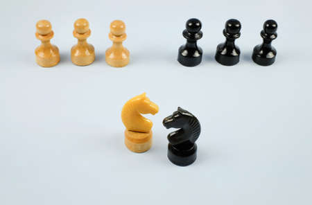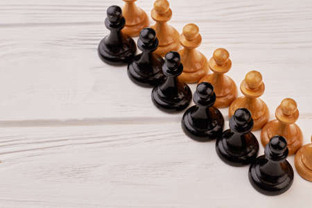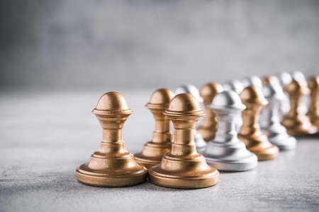 The lowest chess piece in game rank pawn. Tactics and Leadership concept.