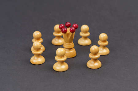 Business and politics concept. Chess, the king is surrounded by pawns.