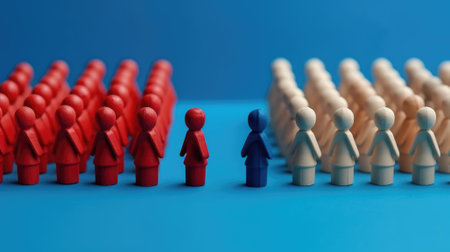 discrimination conceptual image, people divided, miniature toy model, red and blue color. beautiful Generative AI AIG32