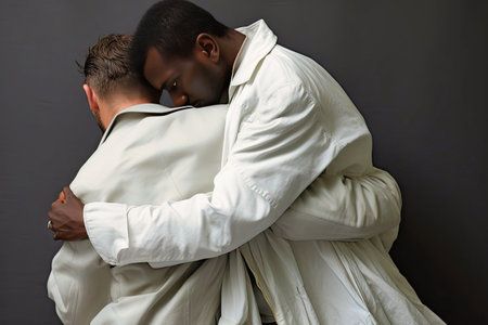 a man hugs another man's shoulder, lgbt