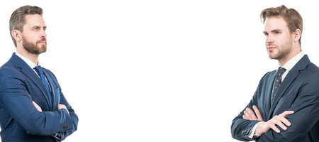 Man face portrait, banner with copy space. boss and employee. confident business partners. executive. professional successful ceo.