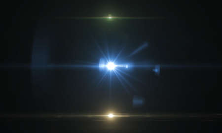Realistic Len flare glow light effect on black background. Optical flares overlay or screen filter matte.