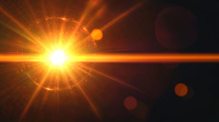 Golden Lens Flare Creating a Magical Atmosphere with Warm Light Effects on a Dark Background