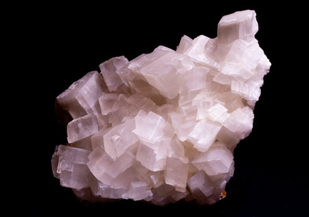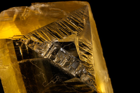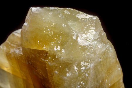 sample of raw colorless calcite mineral on black background close up from Dalnegorsk, Primorye, Russia