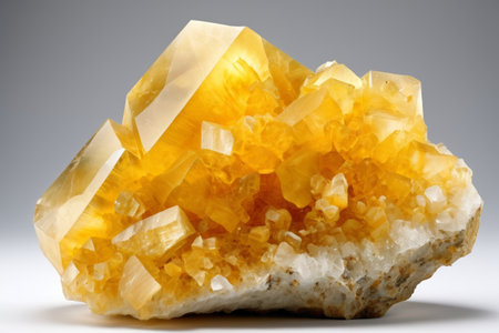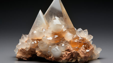 Closeup picture of pure quartz mineral gemstone isolated on a gray background