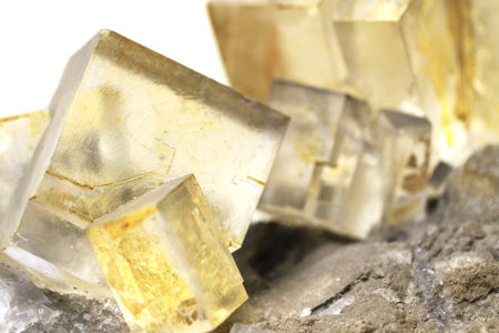 Natural mineral fluorite crystals. Mineral fluorite translucent stone. close up macro