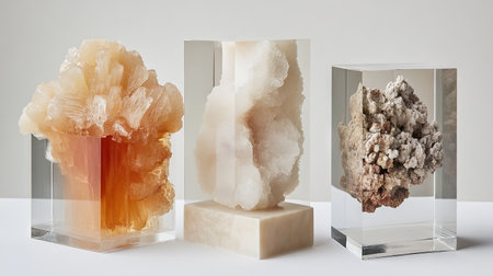 macro shooting of collection natural rock - crystal of gypsum mineral stone ore extracted, from Lampang Thailand.