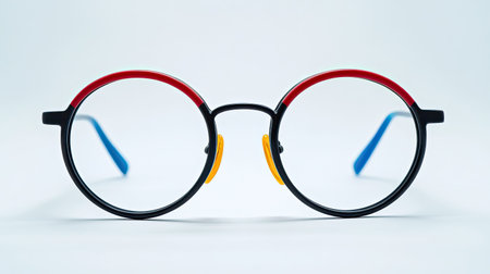 A pair of stylish round glasses features colorful accents that enhance the modern aesthetic. Perfect for adding flair to any outfit or look.