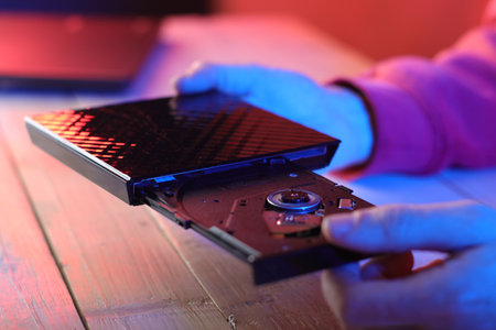 External DVD drive reader. Data security, digital data storage