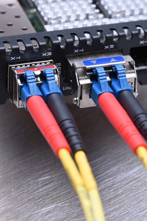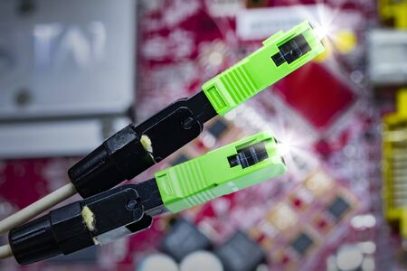 Fiber Optics connectors symbolic photo for fast internet connection ,Internet Service Provider equipment.broadband connection is available everywhere.
