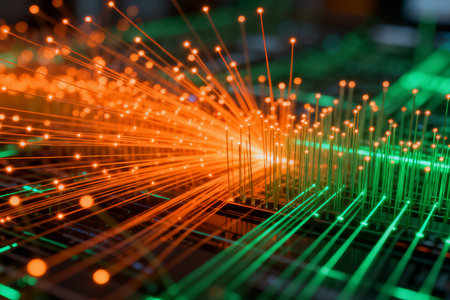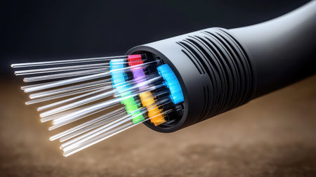 Fiber optic cable runs data connections. Created with Generative AI technology