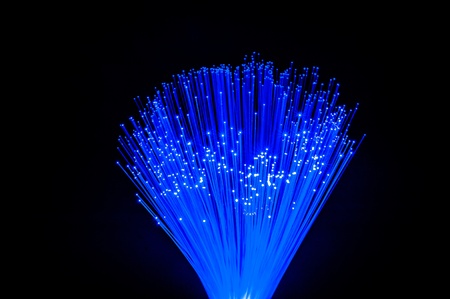 Fiber optics in blue, close up isolated on black background