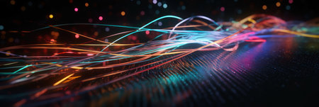 Electrifying Fusion: Kaleidoscope of Colors and Intricate Fiber Optic Cables Illuminate the Scene created with Generative AI technology