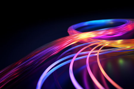 Colorful optic fiber electrical cables wires neon waves lines abstract 3d ai design background pattern glow colored streams information optical connection internet web multicolor data led technology