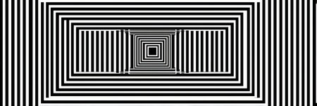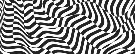 Opt illusion background. Optical illusion banner, distorted black and white lines. Vector illustration