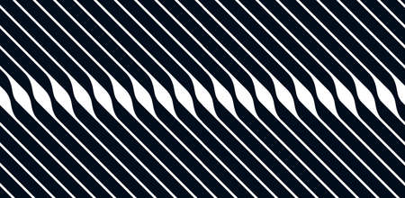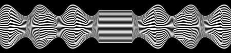 Line waves illusion optical. Black and white seamless horisontal pattern lines vector.