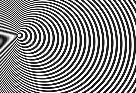 Black and white hypnosis circle illusion background. Vertigo pattern concept in vector flat style.