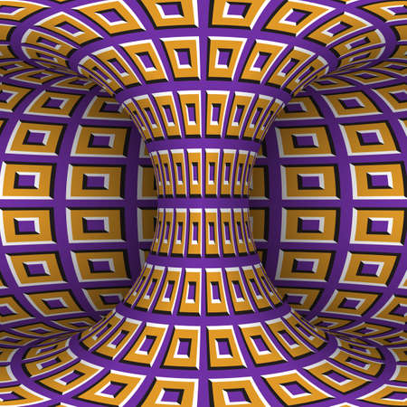 Moving torus of purple orange square pattern. Vector hypnotic optical illusion illustration.