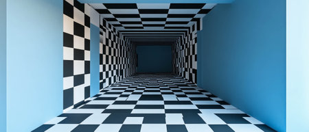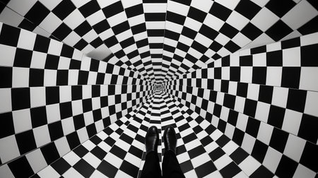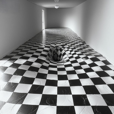 A captivating visual of a checkered floor creating an optical illusion with a surreal dip, symbolizing deception and altered reality in art and design.