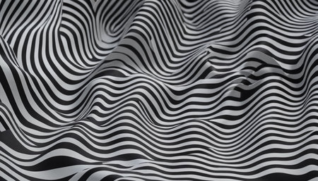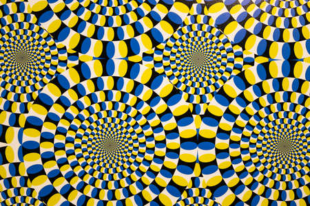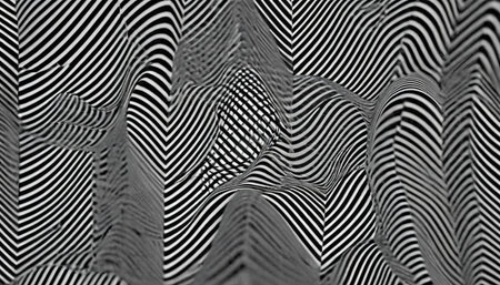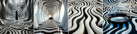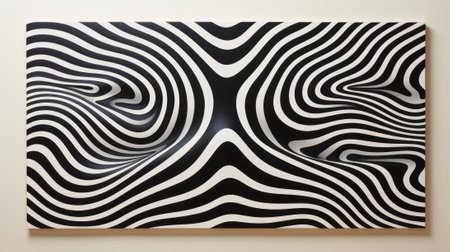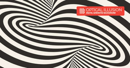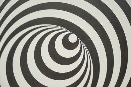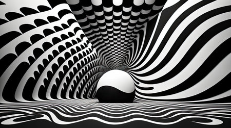 Design art background featuring a bold, black and white optical illusion pattern, creating a sense of depth and movement