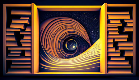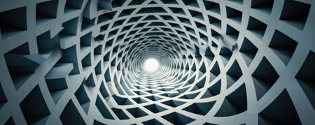 Intricate abstract design featuring a spiral pattern with a luminous center, evoking depth perception and optical illusion. Ideal for modern, artistic projects.