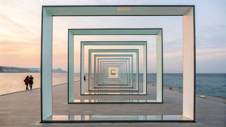 illusion of moving geometric shapes, made by optical illusions and light, created with generative ai