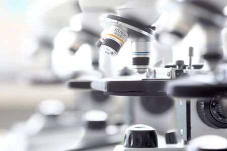 Laboratory microscope lens.modern microscopes in a lab.