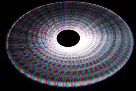 Colorful glowing trail rotating LED, in form of a disc. Isolated on black background.
