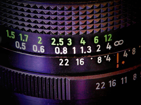 Some of the lenses are close-up, the artistic intent, the blurred edges. Soft selective selective focus. Numbers and values on the lens.