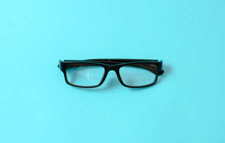 Glasses in black frames on a blue background