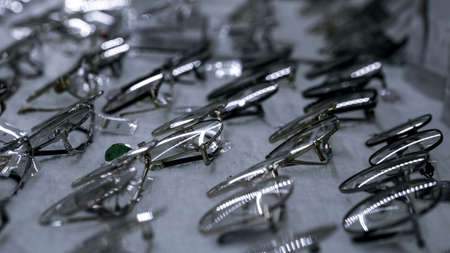 Eyeglasses placed in eyewear store.copy space.Focus selective.