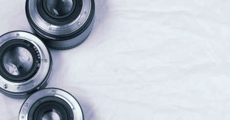 photography camera lenses pattern, collection of video and photo equipment set, technology background. High quality photo