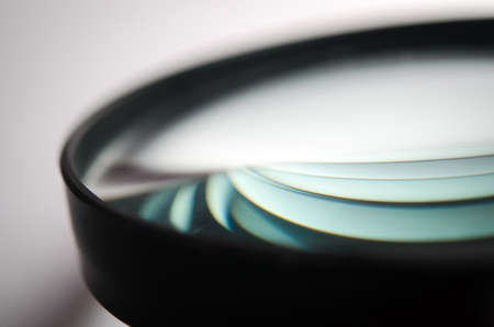 Gleaming black magnifying glasses arranged in an aesthetically pleasing pattern on a red background.