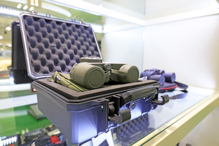 Opthalmology test box. The universal messbrille tool of the optometrist and oculist. Set of dioptric glasses in optician salon.