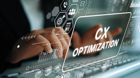 Focused Professional Engaging in Customer Experience Optimization with Digital Interface Elements and Data Visualizations. Asymptotic smart data analytic.