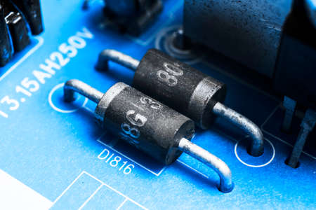 Various SMD diodes, above electronic schematic designer. Electronic component