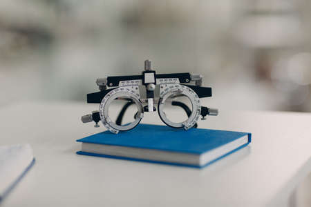 Special trial frame for optometry in ophthalmologist clinic. Eye health check and ophthalmology concept.