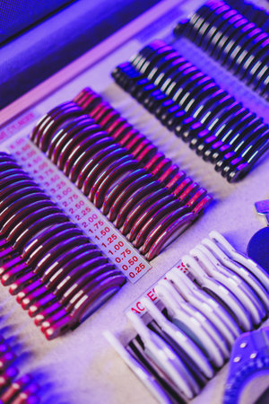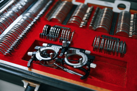 Optometry Trial Lens Set Close-Up. Trial Lens Set for Eye Examination and Vision Testing