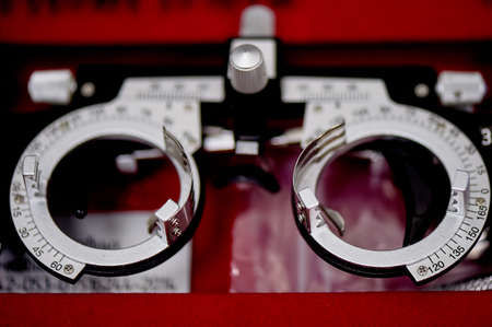 Occulistic tools, the test glasses, professional choice of glasses for diopter selection. High quality photo