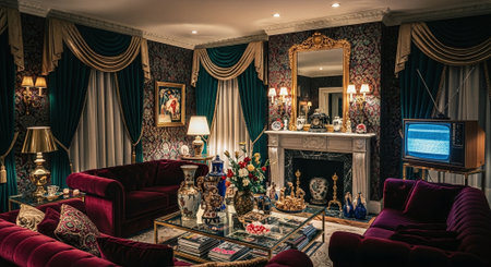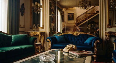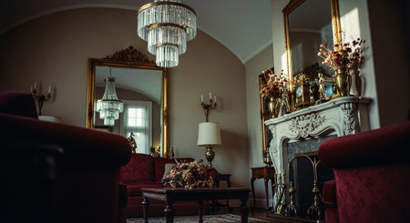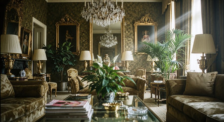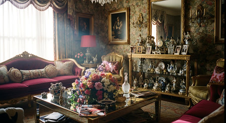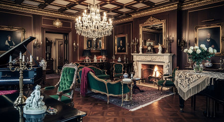 Discover a breathtaking vintage parlor filled with elegant furniture, ornate decor, and soft colors that create a cozy and sophisticated atmosphere.