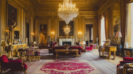 Discover the opulent beauty of a luxurious historical room featuring elegant decor, a crystal chandelier, and vintage furnishings that exude sophistication.