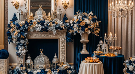 Luxurious floral themed lounge with ornate decor and elegant lighting. That the image is generated using AI.