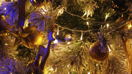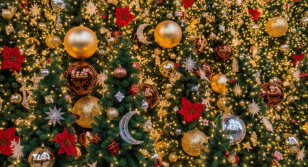 Christmas tree adorned with golden ornaments and sparkling lights, creating a warm and festive atmosphere for the holiday season. The image captures the magic and joy of christmas