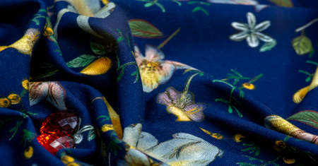 Texture, background, pattern, decorative silk fabric. This collection of silk fabrics with digital printing from RJR is distinguished by bright abstract shapes and colors.