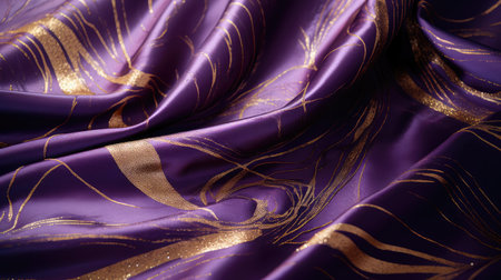 Luxury Purple Gold Brocade Fabric Texture Detailed Closeup Elegant Design Rich Pattern Textile