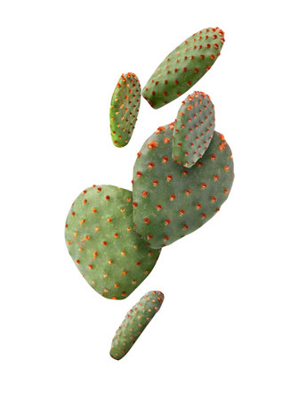Opuntia cactus pads falling on white background